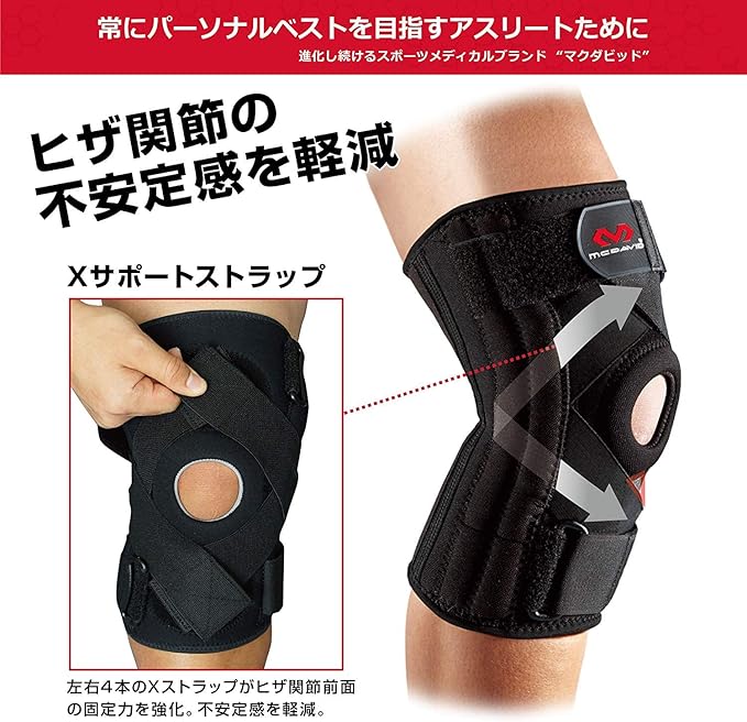 ・ヒザのサイドから前面部をカバーする4本のスパイラルストラップが関節のねじれを制限