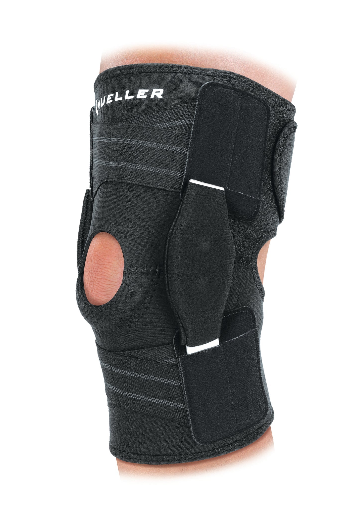 ◾️商品特徴MUELLER|アジャスタブル ヒンジド ニーブレイスアジャスタブル ヒンジド ニーブレイスは装着性を高めるフロント上下2ヵ所のクリスクロスストラップを採用しました。ひざ関節周辺の筋肉組織に効果的な刺激を与え、両側のヒンジが左右のぐらつき、ねじれを抑えます。真ん中の穴とパッドが膝蓋骨にフィットし、ズレを予防します。またクリスクロスストラップの伸縮力が密着度を高めます。