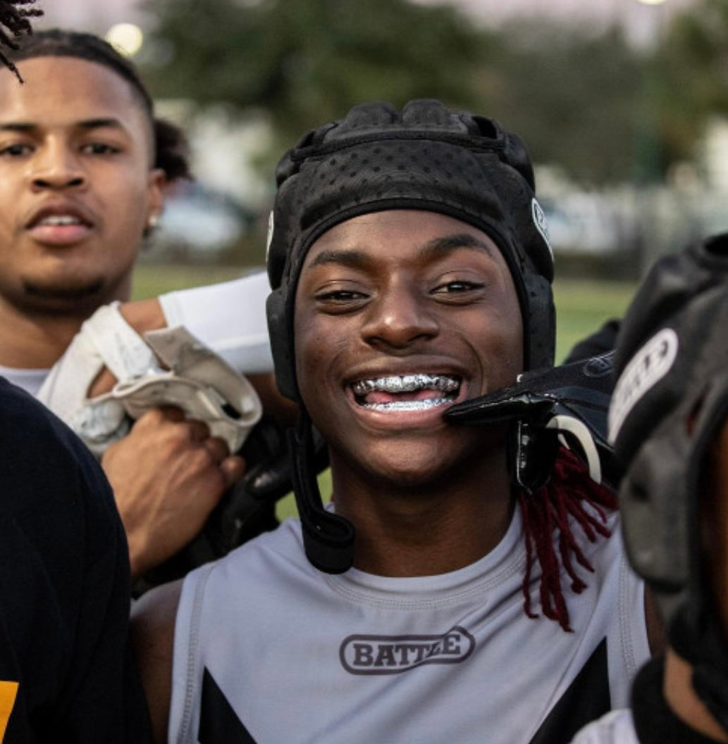 超スリムなGrillz フットボール マウスピースを使用すると、最もハイペースなスポーツ中でも自由に話したり呼吸したりできます。