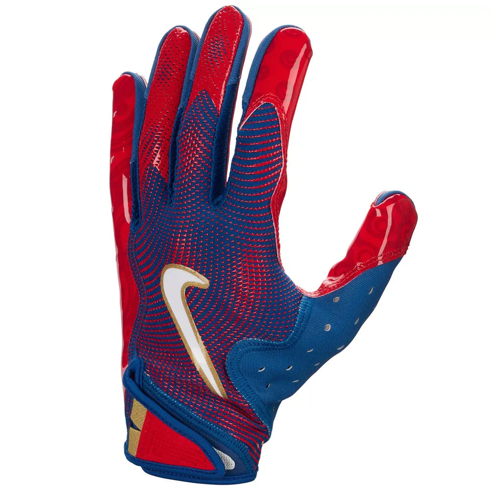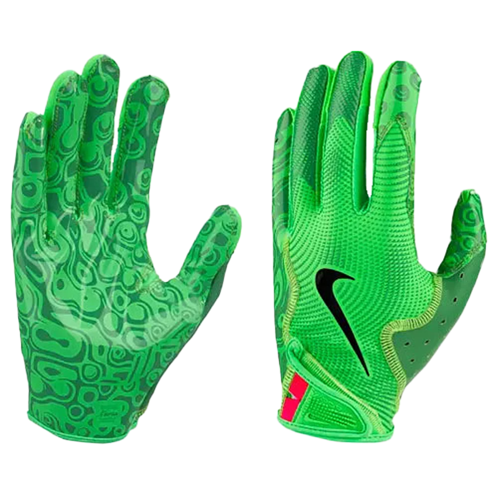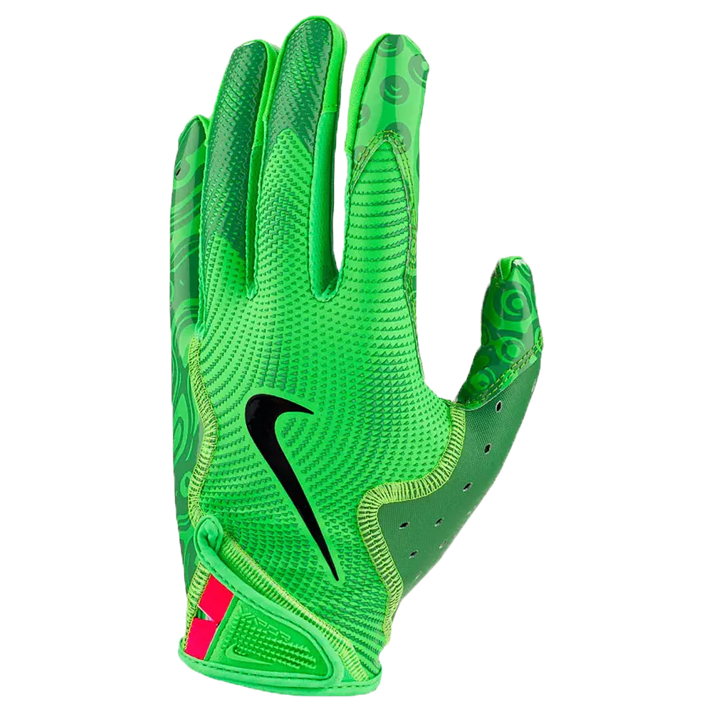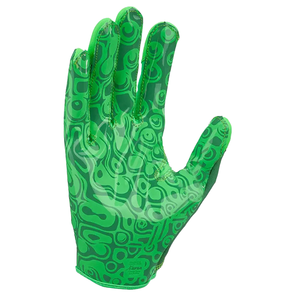 ワイドレシーバー向けにデザインされたこのグローブは、鮮やかなグリーンのカラーで、しっかりとしたフィット感を実現するガントレットカフを採用しています。